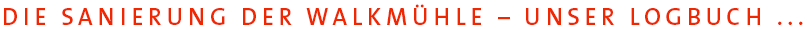 | Die Walkmühle im Umbruch: Mit unserem fotografischen Tagebuch erleben Sie den Fortgang der Sanierungsarbeiten ganz nah! (Um ganz am Anfang der Sanierungsarbeiten im Jahr 2013 zu beginnen, klicken Sie einfach HIER) |