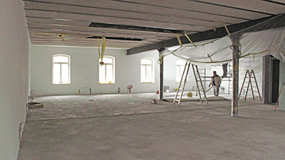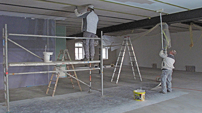 Malerarbeiten im Dachgeschoss des Brauhauses. |