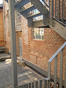 01.04.2020 Auf der neuen Fluchtreppe auf der Nordseite des Brauhauses. |