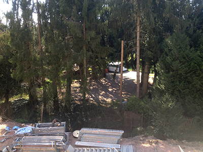 02.04.2020 Die Südseite als Materiallager für die Arbeiten an den Außenanlagen. |