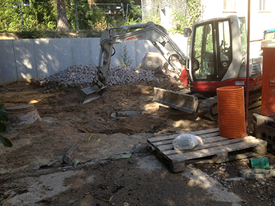 21.08.2020 Erdarbeiten und Pflastersteine im Vorbereich des Backsteinhauses. |