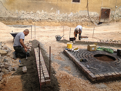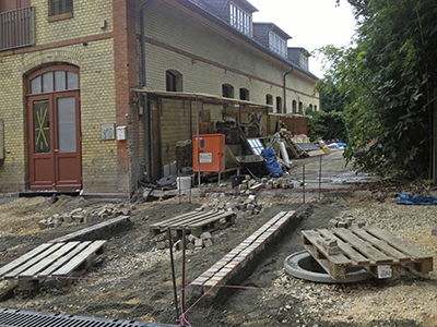 03.09.2020 Arbeiten an den Außenanlagen vor dem Pferdestall und dem Mühlengebäude. |