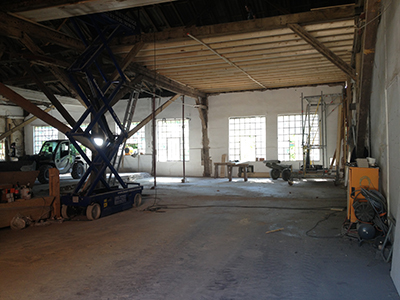 10.09.2020 Bildeindrücke aus dem weitgehend entkernten Kühlschiff. Hier werden sich später ein großer Veranstaltungsraum des Künstlervereins, die Toilettenanlagen für den Veranstaltungsbereich, ein großes Atelier und kleinere Lagerräume befinden. |