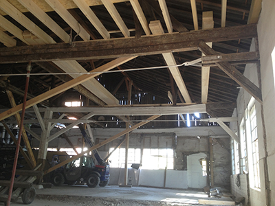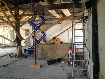07.09.2020 Abbruch der Zwischenwände im Kühlschiff und neue Balken für die Zwischendecke. |