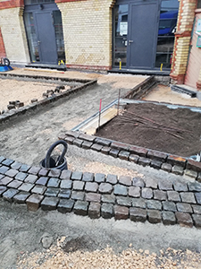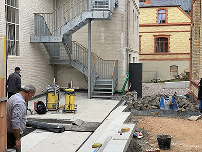 21.10.2020 Pflasterarbeiten rund um das Obergeschoss des Sudhauses. |