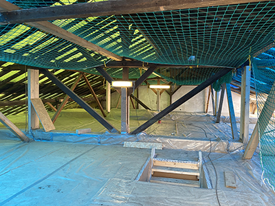 03.03.2021 Einrüstung der Giebelfassade des Pferdestalls. |