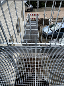 16.03.2021 Der Bodenrost der Brücke zwischen Getreidelagerterrasse und Pferdestallgarten ist montiert. |