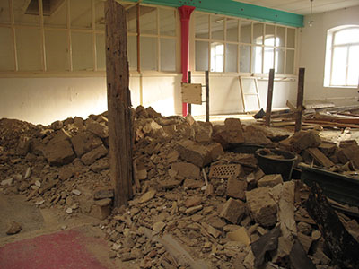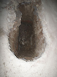 Sondierungsgrabung im Fußboden des ehemaligen Studios von Bernhard Schmerl. |