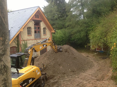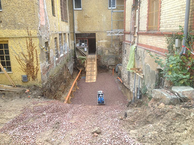 Schotterverdichtung im Mühlenhof. |