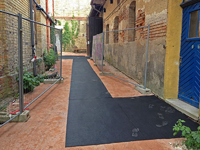 16.09.2016 Sanierungsarbeiten unter laufendem Kulturveranstaltungsbetrieb erfordern erhöhte Anforderungen an die Baustellensicherung insbesondere dann, wenn ein großes Fest mit vielen Besuchern ansteht: Hier werden Bauzäune als Sicherungsabsperrungen der Zu- bzw. Fluchtwege geliefert |