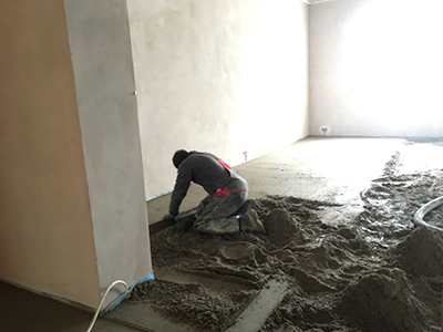 Im künftigen Atelier im Malzhaus verschwindet derweil die Fußbodenheizung unter frischem Estrich. |