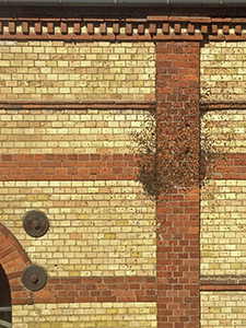 Trotz der Baustellenaufregung: "Unsere" Bienen sind wieder da! Sie wohnen im Hohlraum zwischen dem doppelwandigen Mauerwerk des Sudhauses. An ihren Honig wird niemals ein Imker herankommen! |