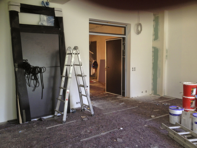 Malerarbeiten im Veranstaltungsraum des Malzhauses EG. |