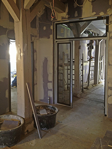 Hier wartet bereits die Tür zwischen dem Malzhaus-Atelier und dem Haupttreppenhaus im Turm auf ihren Einbau. |