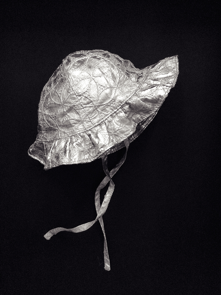 | »Süddeutsche Erstausstattung. Paradeuniform Schutzhelm«, 2021 Metall auf Baumwolle, gerahmt ca. 50 x 40 cm |
