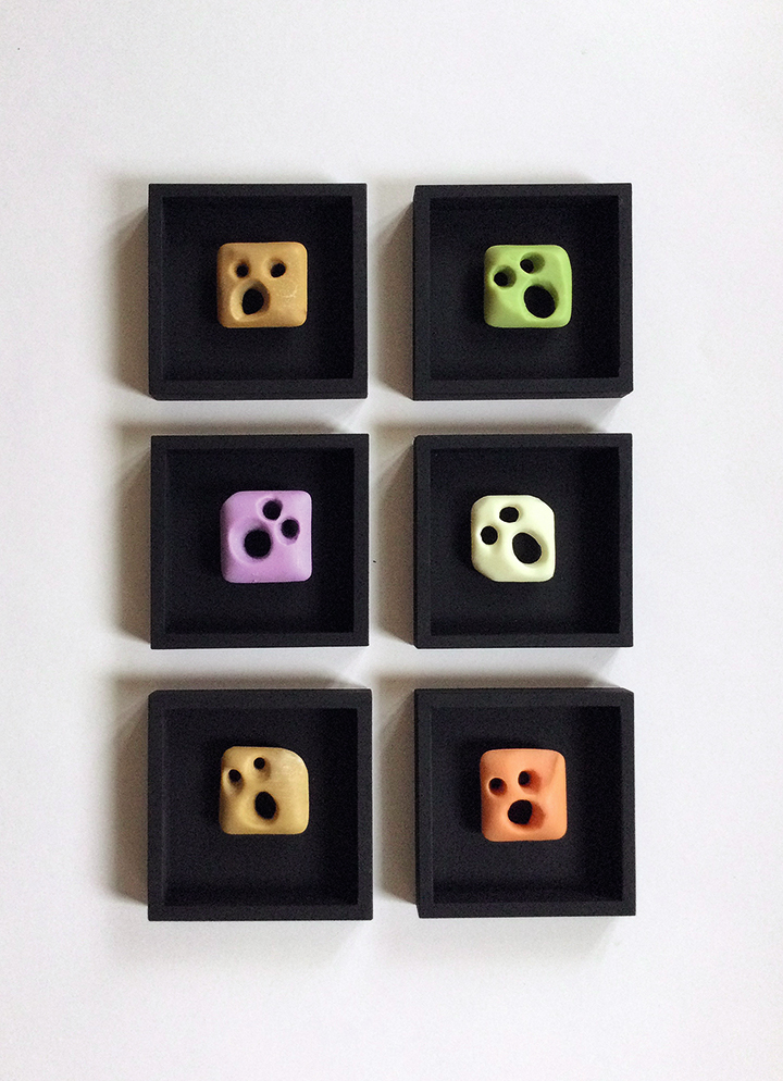 | »6 Studien zu Munch: Der Schrei«, 2015-2022 Seife auf Holz, je 15 x 15 cm |