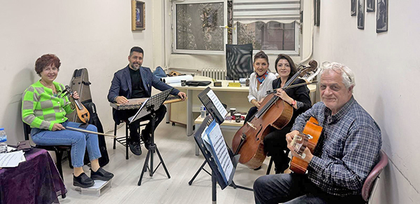 Die Verwestlichung im osmanischen Reich begann unter Sultan Selim III in einer Epoche mit vielen gesellschaftlichen Umbrüchen. Die Schließung der Janitscharenkapelle leitete um 1800 eine neue Ära der türkischen Musik ein. Die Übernahme der Formensprache westlicher Musik importierte neuartige Kompositions- und Aufführungsformen in die Türkei. Zur internationalen Präsentation der Werke dieser Epoche gründete Nermin Kaygusuz das Nermin Ensemble für türkische Musik, das heute Nevsada Türk Müzigi Toplulugu heißt. Nermin ist Dozentin am Staatlichen Konservatorium für türkische Musik an der Technischen Universität Istanbul. Nevsada interpretiert die in die türkische Musik eingegangenen Stile in einer Weise, die die ursprüngliche Struktur der klassischen türkischen Musik nicht verändert. Mehrstimmige Variationen betonen den innovativen Geist der Stücke. Das Ensemble besteht aus fünf Musikern mit überwiegend akademischer Ausbildung. Sie sind Interpreten und Lehrer der türkischen Musik. Alle haben vielfältige Konzerterfahrungen wie im Istanbul Music Festival 2024 und im Funkhaus von Istanbuls Partnerstadt Köln 2025. Zu ihren Instrumenten zählen auch die seltene Kemençe und der Kanun. Die Musiker performen nicht nur die Musik, sondern informieren auch über behandelte Epochen, Komponisten und Werke. Auf Wunsch tauschen sie sich gern mit dem Publikum aus. ![]() Das Ensemble Nevsada beim Proben. Foto © Ensemble Nevsada Das Ensemble hat der Partnerschaft Wiesbaden-Istanbul/Fatih beim Treffen mit Freunden in Istanbul im Oktober 2025 das Konzert angeboten. Die Partnerschaft ist seit 2012 im deutsch-türkischen Kulturaustausch erfahren und hat die Organisation und maßgeblich auch die Finanzierung gern übernommen. Denn die eingeladenen türkeistämmigen Künstler kamen bisher oft aus der Rhein-Main-Region aber selten aus der Partnerstadt. Die Musikerinnen und Musiker: Frau Prof. Nermin Kaygusuz: Gründerin zahlreicher Ensembles mit internationalen Auftritten, Dozentin und Autorin, Kemençe und Gesang Frau Dr. Gülsah Sönmez: Preisträgerin für Gesang und Musikpädagogin, Gesang Frau Rüya Kocamemis: Teilnehmerin an vielen Konzerten und Musiklehrerin, Cello Herr Prof. Dr. Volkan Gidis: Komponist, Dirigent und Solist mit zahlreichen internationalen Auftritten, Kanun Herr Hakan Kuralay: Musiktechnologe und -pädagoge, Gitarre Voranmeldung für Besucher*innen: Da viele Besucher erwartet werden und die Platzkapazität begrenzt ist, bitten wir um >Voranmeldung per E-mail. Bitte beachten Sie die nebenstehenden Hinweise zur Anfahrt. Eine Veranstaltung in Kooperation mit der Partnerschaft Wiesbaden-Istanbul/Fatih und mit freundlicher Unterstützung durch das Kulturamt Wiesbaden. ......... ........Titelbild und Aufführungsbild: |